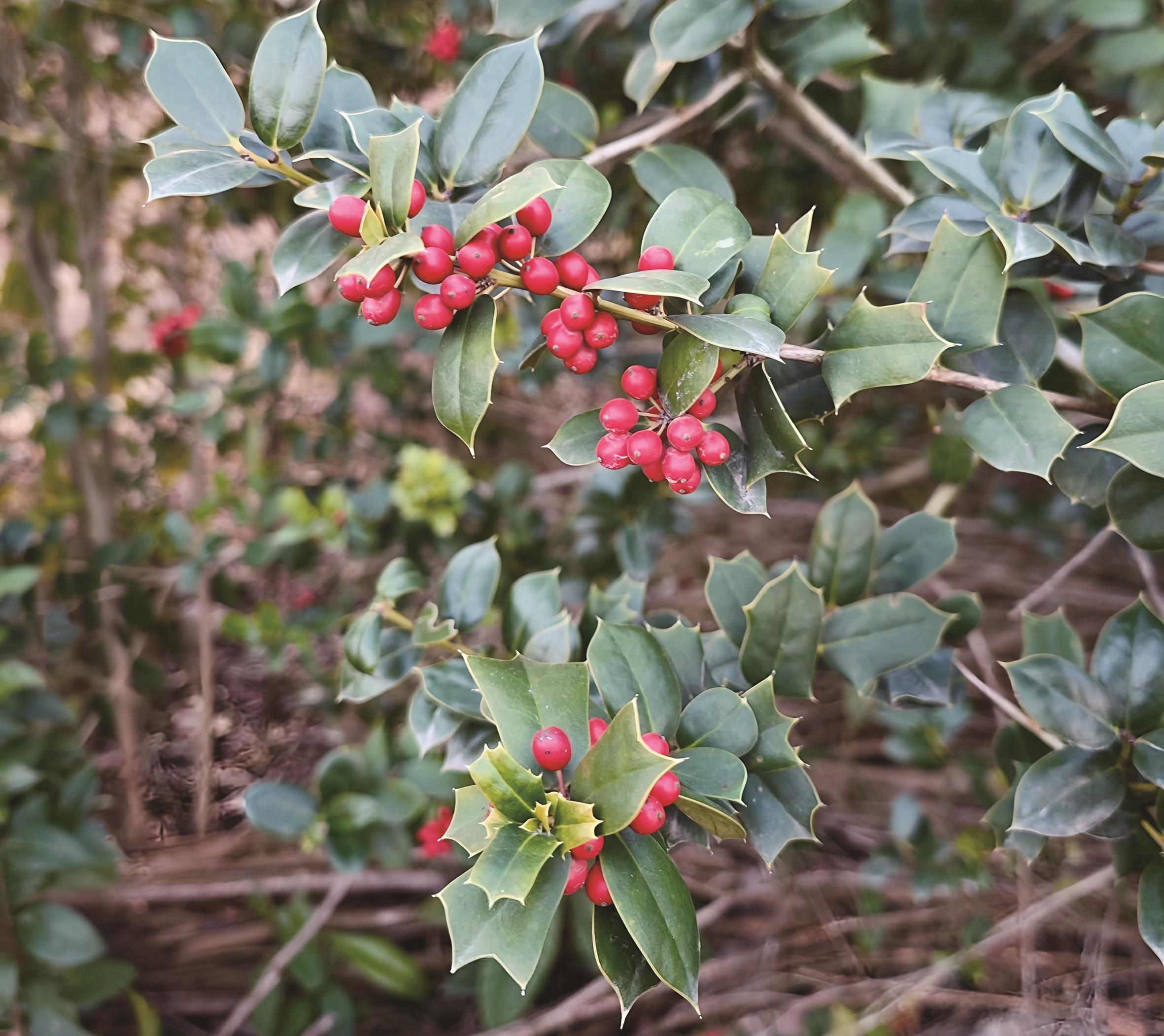 枸骨叶子四季常青、油光锃亮,仿佛涂了一层蜡,这层蜡质正是它抵御严寒的“法宝”。