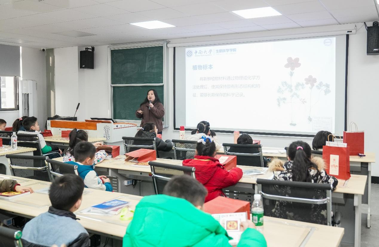 在科普课堂上,生命科学学院唐璐璐副教授以《进击的植物标本》为题,向孩子们生动讲述了植物标本从古至今的发展历程、不同类型及其在科学研究中的重要作用,将承载着时光与知识的标本故事娓娓道来。